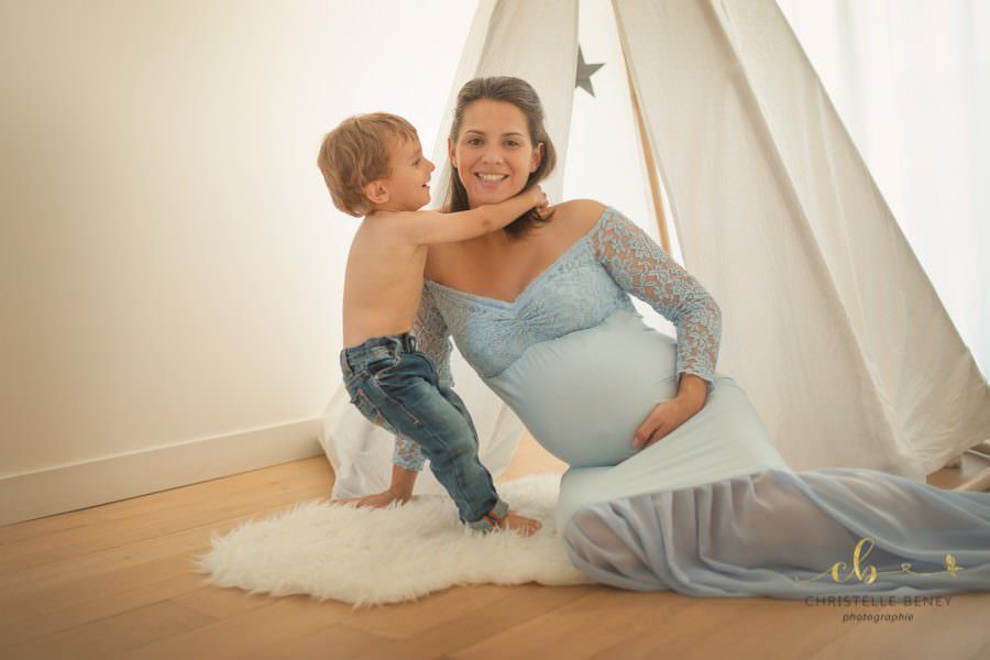 Elle dure environ 1h30 à 2h et peut être réalisée à mon studio photo , en extérieur ou chez vous. Je réalise plusieurs tableaux, maman seule, avec le futur papa et ensuite avec les autres membres de la famille. Je vous guiderai tout le long de la séance, je mettrai en valeur votre ventre en fonction de votre morphologie. En studio, je travaille souvent sur des fonds naturels : blancs, gris et noir afin de vous permettre d’avoir des photos intemporelles.