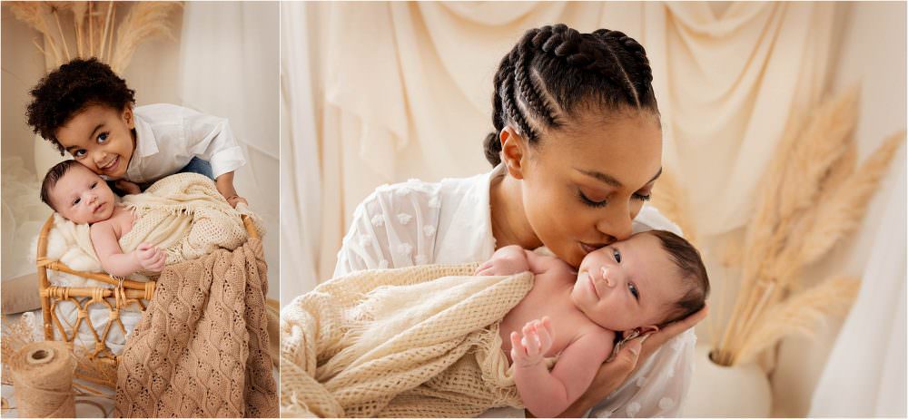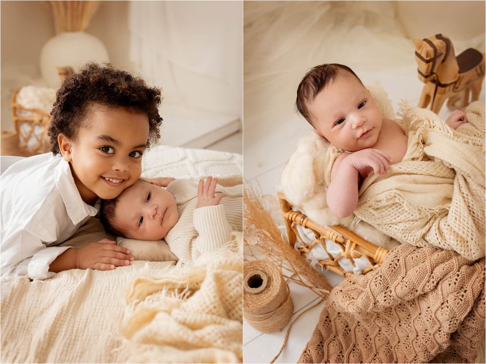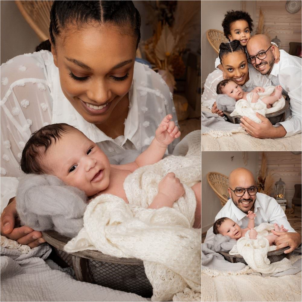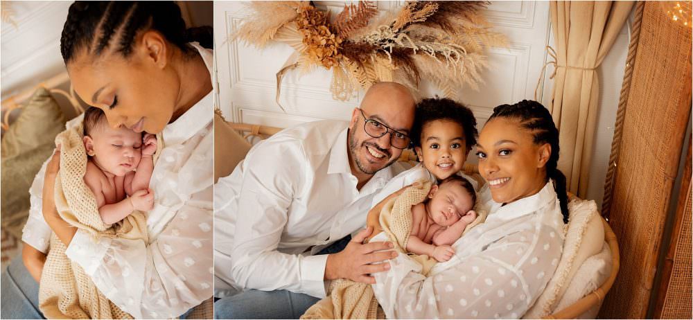 Dans un décor doux et chaleureux, nous avons laissé libre cours à la magie de l’instant. Pas de poses forcées, pas de sourires figés, juste la beauté naturelle de la vie qui se déroule devant nos yeux. Les parents se sont blottis autour de leurs fils, échangeant des regards complices et des câlins remplis de douceur. Pendant ce temps, le grand frère de Noham a pris son rôle à cœur, le protégeant avec tendresse et curiosité, émerveillé par ce petit être qui venait de rejoindre sa vie.