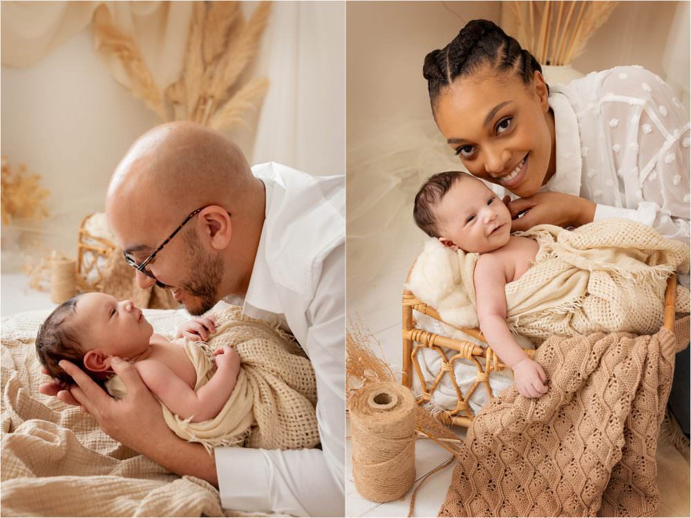 Il y a quelque chose de magique dans les premiers jours d’un nouveau-né. Chaque expression, chaque geste, semble être empreint de pureté et de merveille. C’est dans cet esprit que nous avons accueilli Noham au studio pour une séance photo qui capturerait ces moments précieux, imprégnés d’amour et de tendresse.