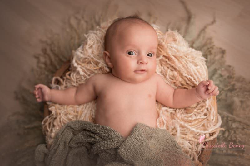 Les photos de nouveau né se font normalement dans les 10-15 premiers jours de vie de bébé. Les parents de Maxime n’ont pas pu se libérer à ce moment là, nous avons fait les photos de Maxime à 2 mois, j’ai alors reçu un bébé bien éveillé ,souriant et tout potelé. Un amour de poupon .je vous laisse découvrir un extrait… photographe bébé Toulouse