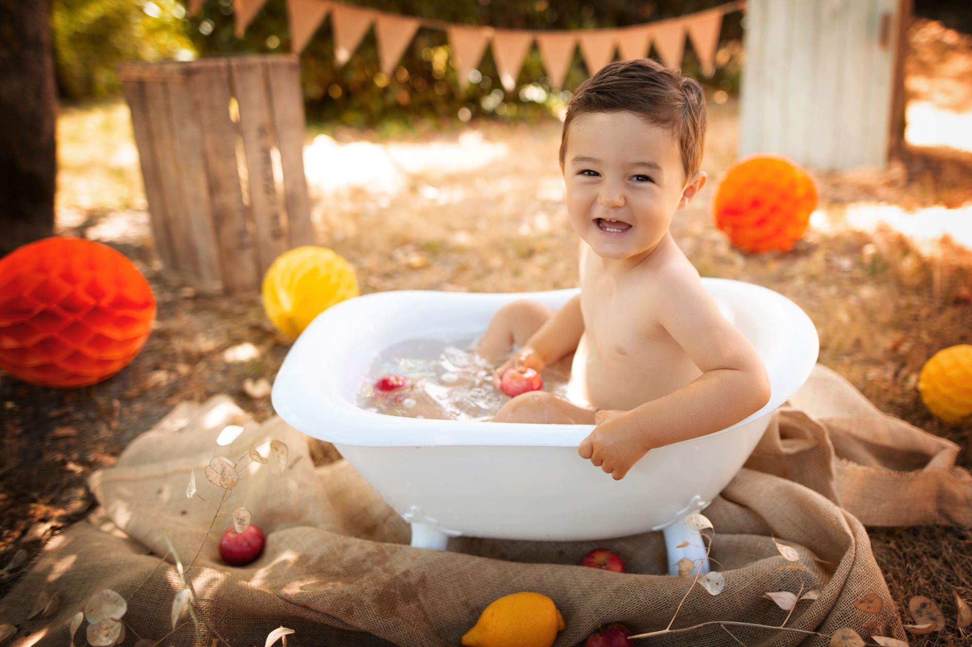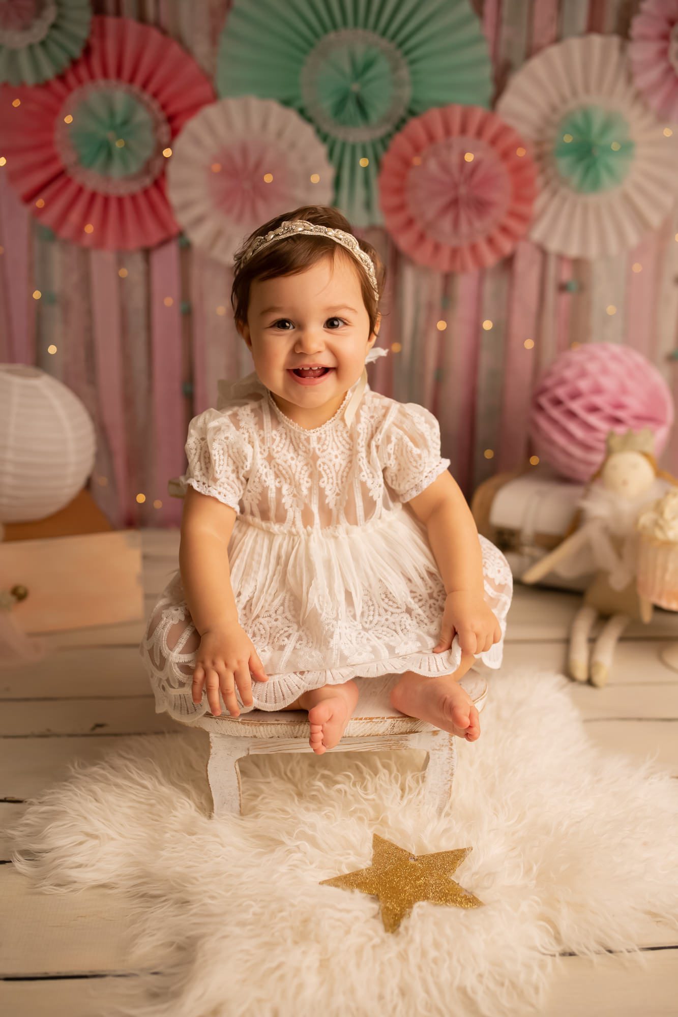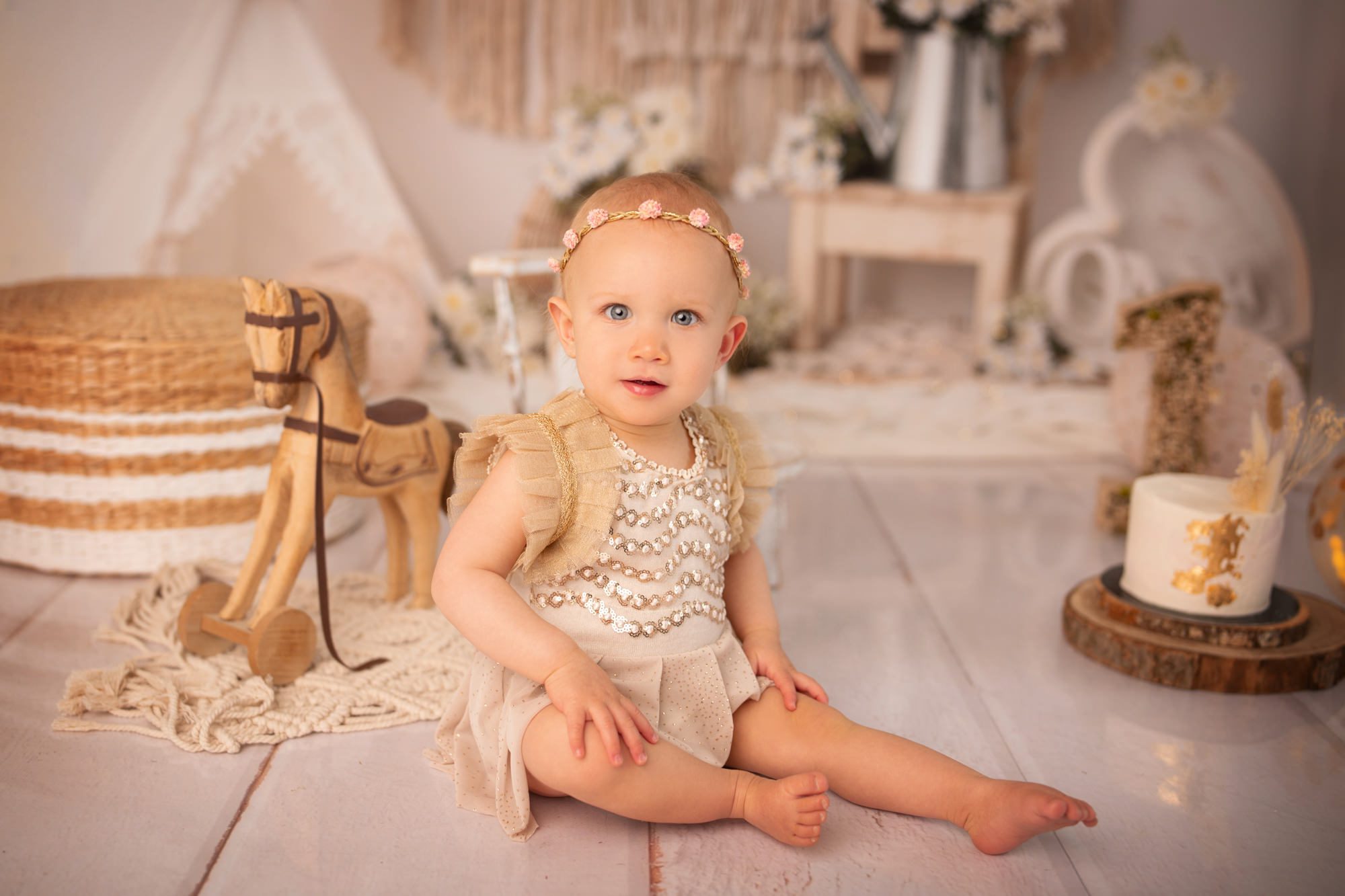 Les séance "Smash the cake" et "Bain de lait" est idéale autour du premier anniversaire ; dès que bébé tient bien assis.