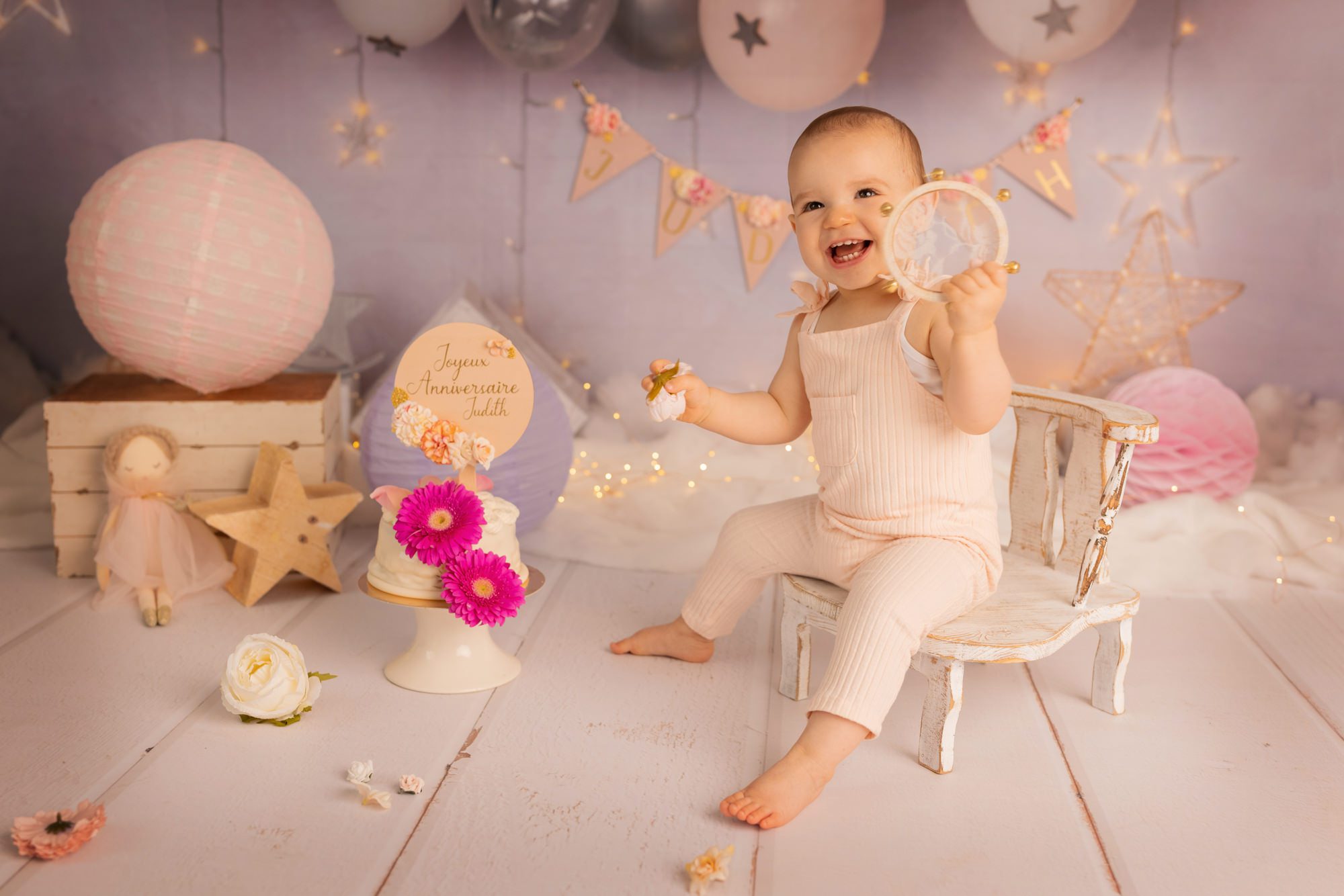 Ces séances sont pensées pour s’adapter à son âge et à son rythme : séance “portrait de bébé” pour capturer ses mimiques, séance “bain de lait” pour un moment de jeu et de douceur, ou séance “smash the cake” pour fêter sa première bougie avec un décor joyeux et naturel.