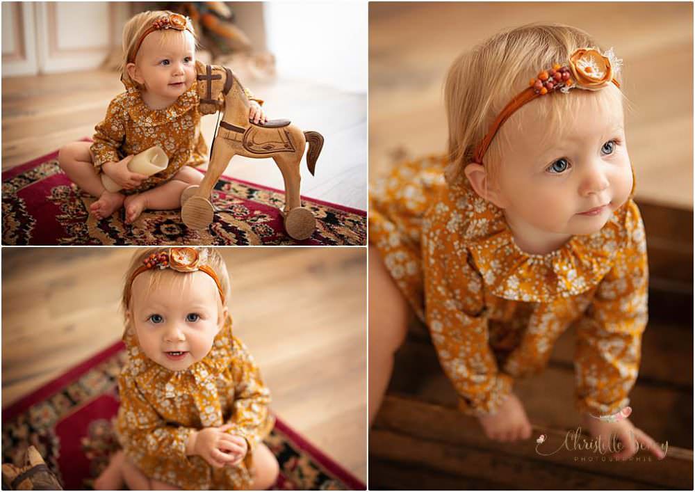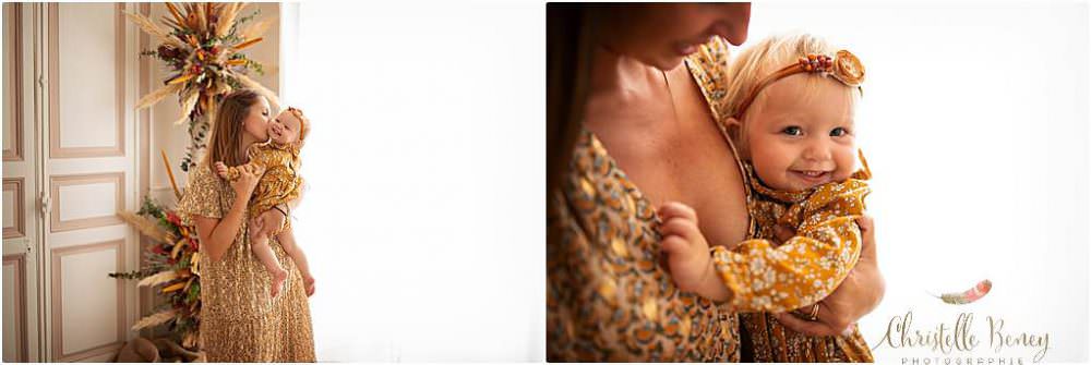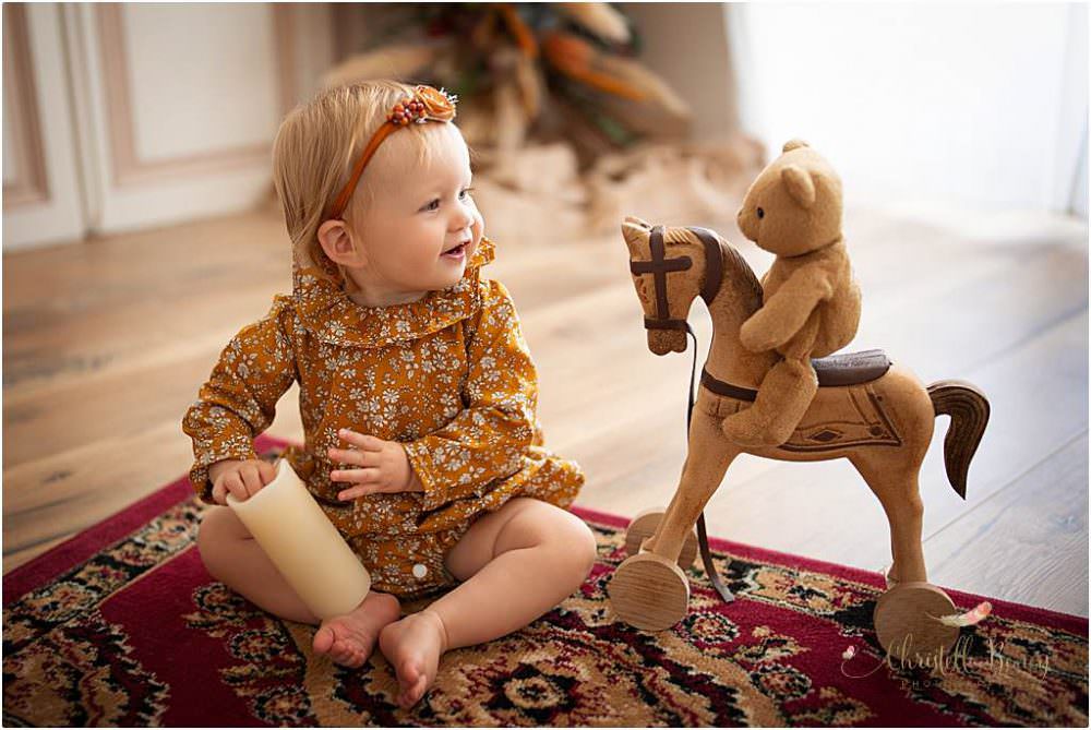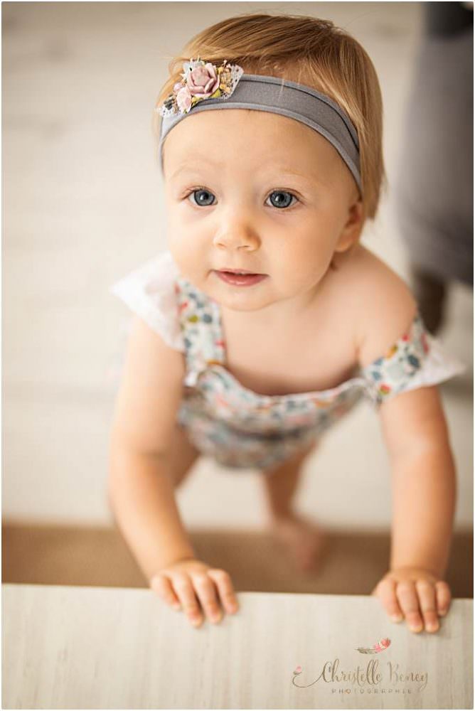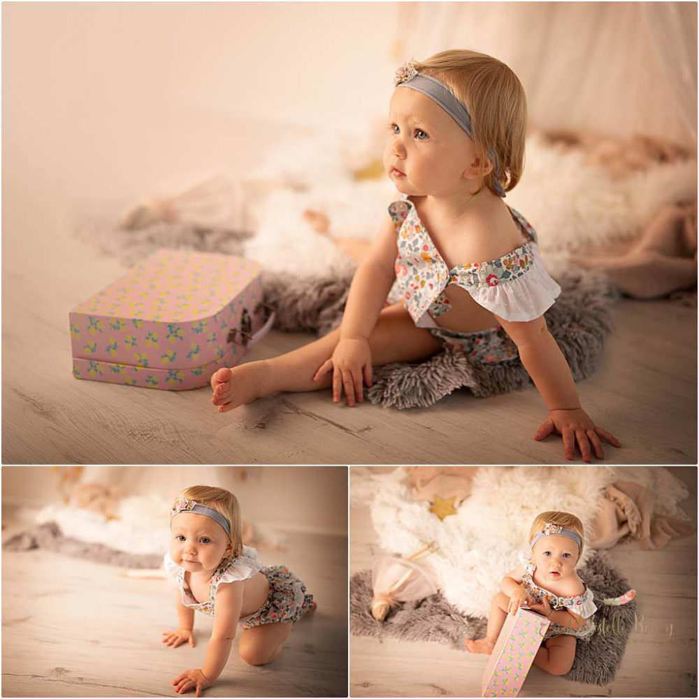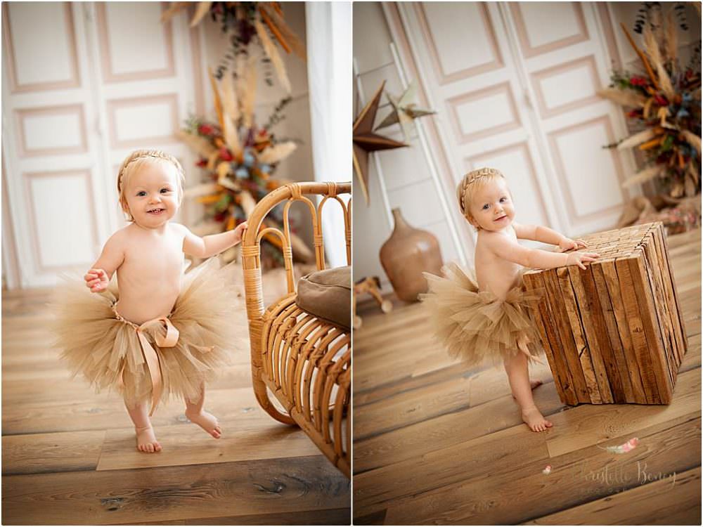 Papa et Maman ne voulaient pas de décor trop anniversaire, pas de séance smash the cake mais juste que l’on voit qu’elle fête ses un an sur quelques photos. J’ai donc glissé un petit 1 floral sur certains clichés.