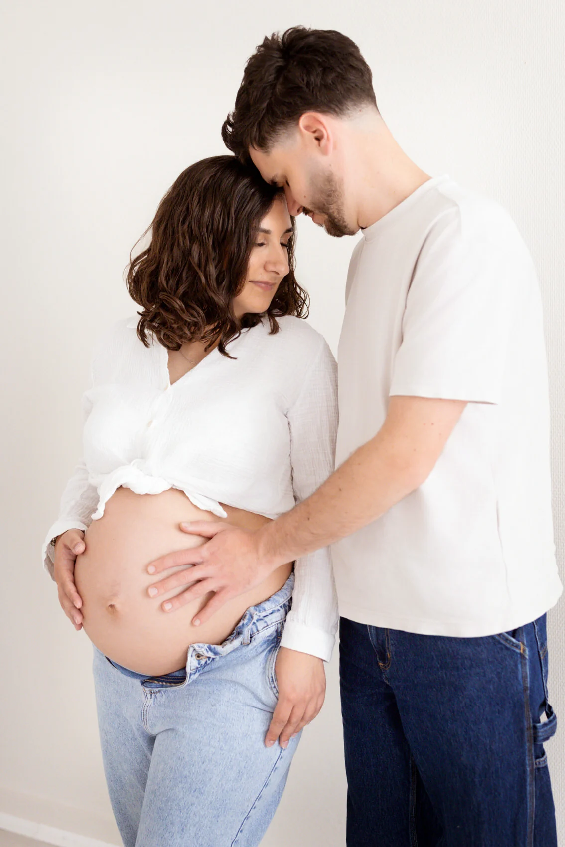 Une séance grossesse en studio permet de créer des images intemporelles, épurées et parfaitement maîtrisées. La lumière, les décors et les poses sont travaillés avec précision pour sublimer les formes et les émotions, sans distraction extérieure. Vous pouvez profiter d’un moment au calme, au chaud, entourée de plaids, de voilages et de textures naturelles. C’est un cadre intime et confortable, idéal pour se concentrer sur la douceur du moment et révéler la féminité dans une ambiance cocooning et élégante.
