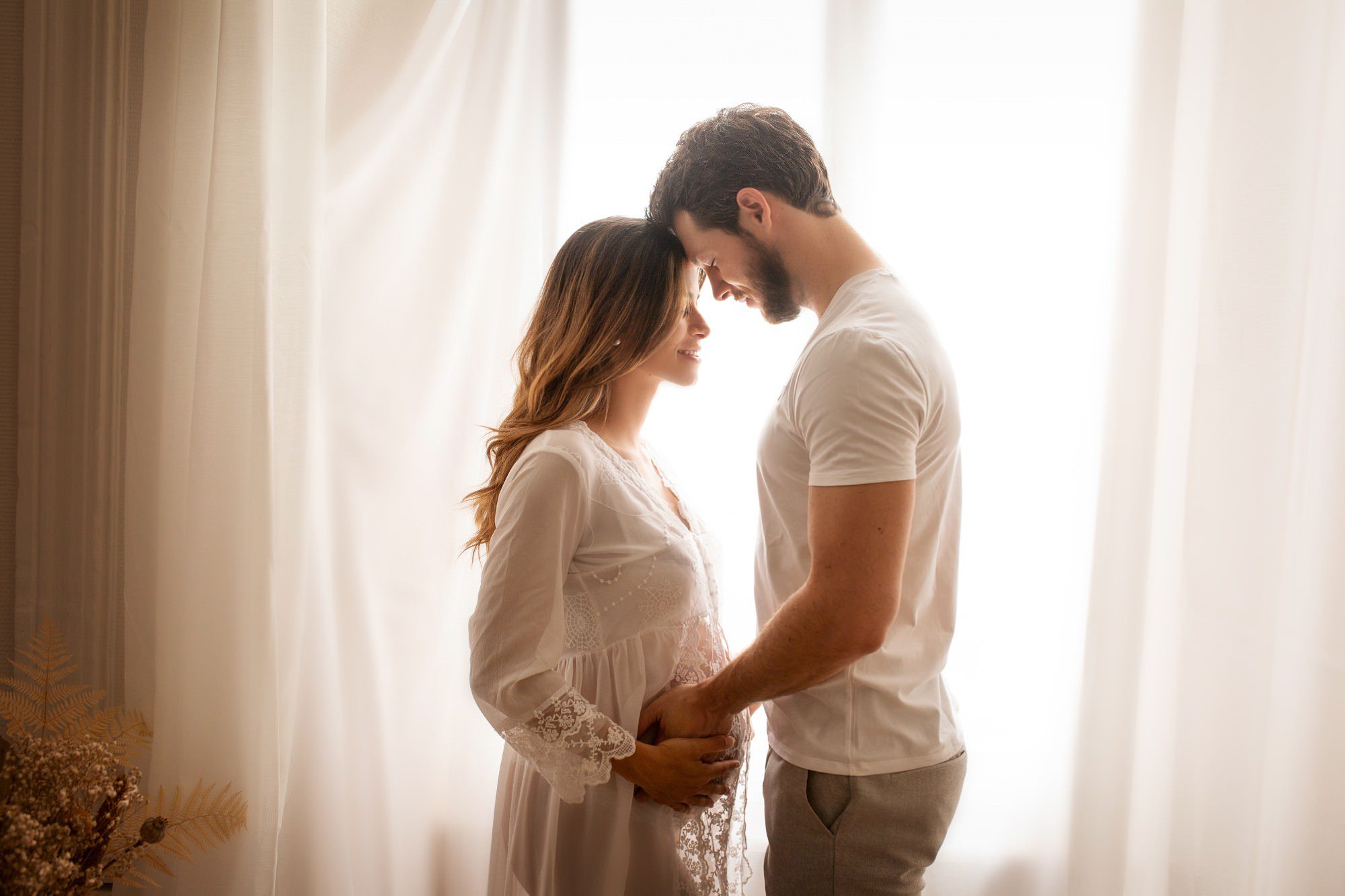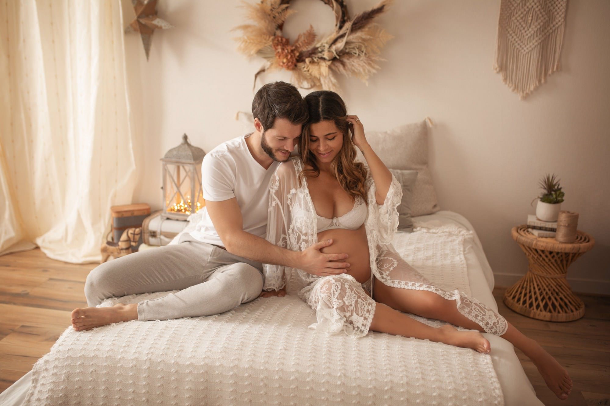 Une séance grossesse en studio permet de créer des images intemporelles, épurées et parfaitement maîtrisées. La lumière, les décors et les poses sont travaillés avec précision pour sublimer les formes et les émotions, sans distraction extérieure. Vous pouvez profiter d’un moment au calme, au chaud, entourée de plaids, de voilages et de textures naturelles. C’est un cadre intime et confortable, idéal pour se concentrer sur la douceur du moment et révéler la féminité dans une ambiance cocooning et élégante.