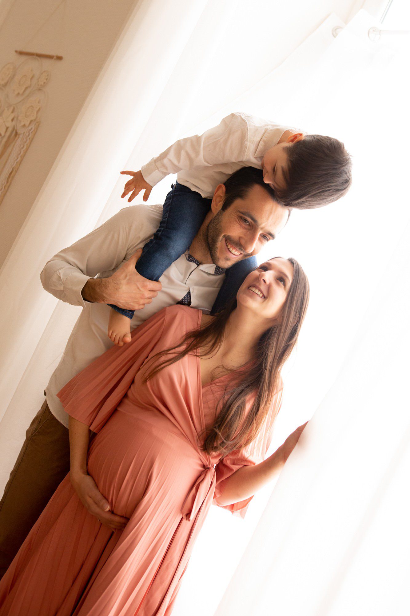 Je ferai plusieurs tableaux : maman seule, avec le futur papa, vos enfants sont bien sûr aussi conviés pour immortaliser ces beaux moments. Je peux également faire des prises de vue plus posées si vous le désirez sur fond unis et lumière flash.