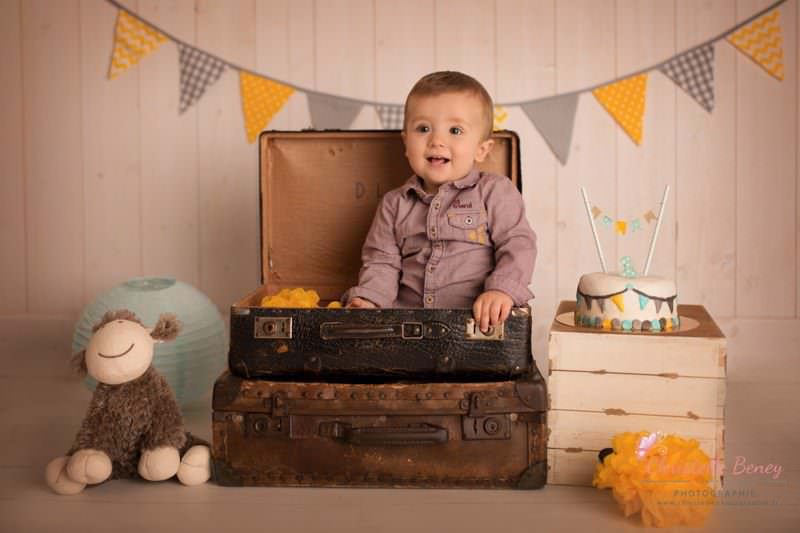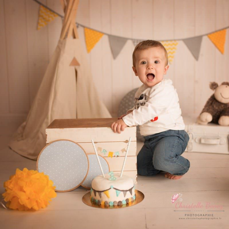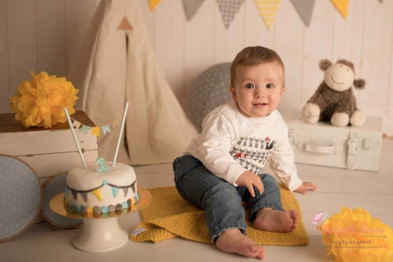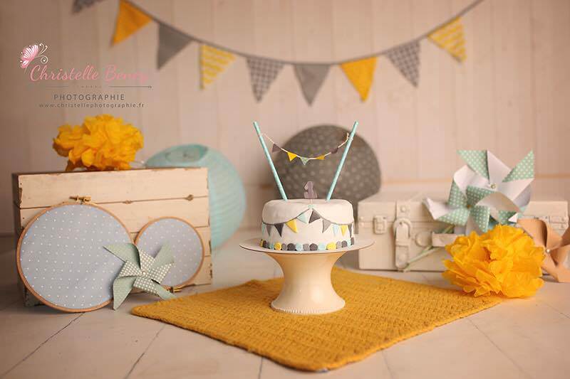 Une séance anniversaire avec des pointes de jaune, gris et bleu ciel