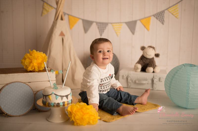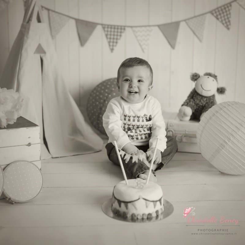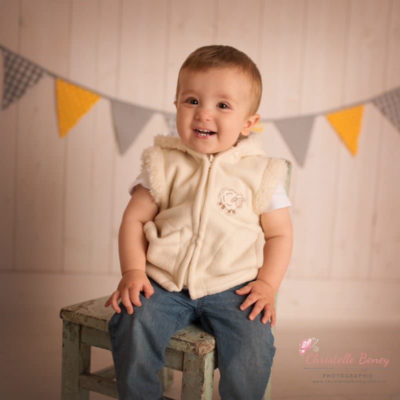 Théo, déjà photographié à sa naissance est venu pour souffler sa première bougie au studio. séance anniversaire toulouse